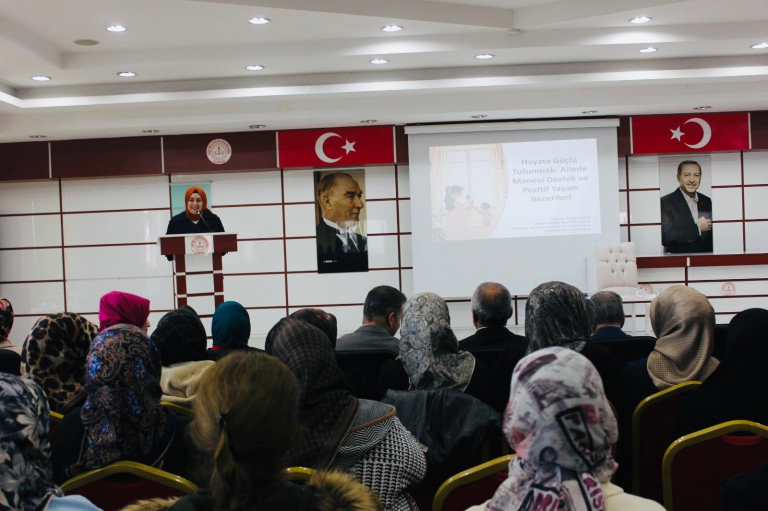 Türkiye Yüzyılı Maarif Modeli kapsamında düzenlenen ve “Hayata Güçlü Tutunmak: Ailede Manevi Destek ve Pozitif Yaşam Becerileri” başlığıyla gerçekleştirilen bu buluşmada; ailede manevi değerlerin, umut ve anlam duygusunun, psikolojik dayanıklılığın ve pozitif yaşam becerilerinin birey ve aile yaşamındaki koruyucu ve güçlendirici rolü ele alındı. Yaklaşık 300 katılımcının yer aldığı programda; aile içi dayanışmanın önemi, zorlayıcı yaşam deneyimleri karşısında psikolojik esnekliğin geliştirilmesi ve günlük hayatta kullanılabilecek etkili başa çıkma yolları üzerinde duruldu.