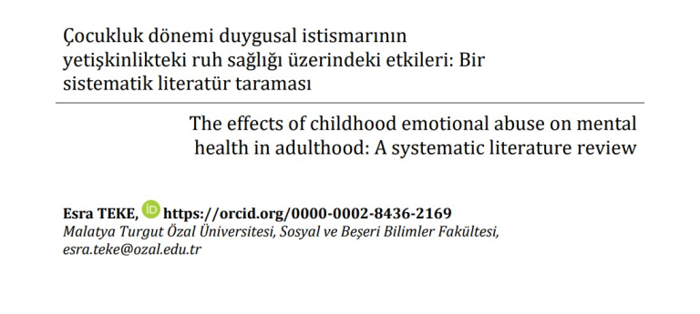 Dr. Öğr. Üyesi Esra TEKE'nin diğer çalışmaları olan "Çocukluk Dönemi Duygusal İstismarının Yetişkinlikteki Ruh Sağlığı Üzerindeki Etkileri: Bir Sistematik Literatür Taraması" Kocaeli Üniversitesi Eğitim Dergisi'nde; "Türkiye’de Çocuklarda Göz Hareketleri ile Duyarsızlaştırma ve Yeniden İşleme (EMDR) Kapsamında Yapılan Çalışmaların İncelenmesi" Necmettin Erbakan Üniversitesi Ereğli Eğitim Fakültesi Dergisi'nde yayınlandı.